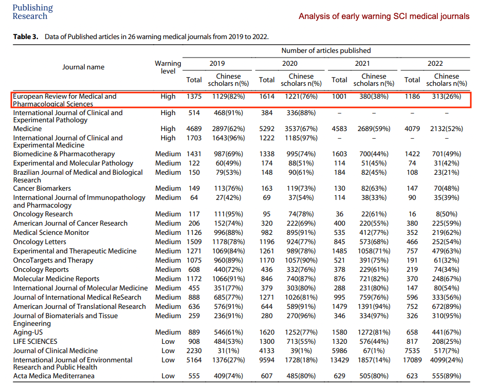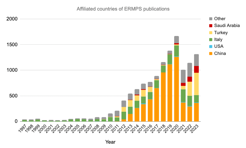 In 2020 the percentage of Chinese papers dropped abruptly, most likely because of ERMPS’s inclusion on an “Early Warning List” released by the National Science Library of the Chinese Academy of Sciences. ERMPS received the highest warning level on that list, mainly because of the high number of retractions from Chinese scholars by that journal.