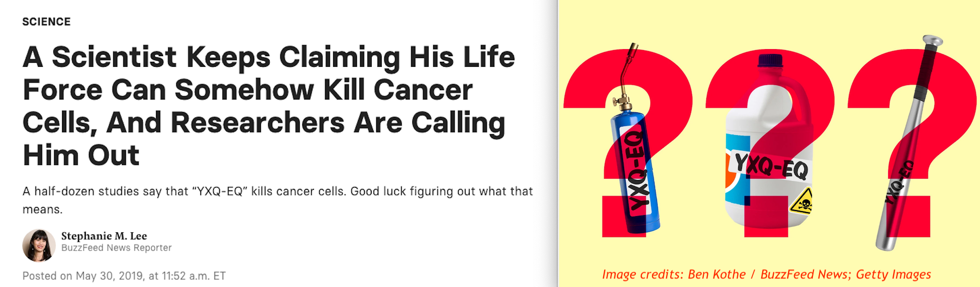 “A Scientist Keeps Claiming His Life Force Can Somehow Kill Cancer Cells, And Researchers Are Calling Him Out” – Stephanie M. Lee – BuzzFeed – May 30, 2019