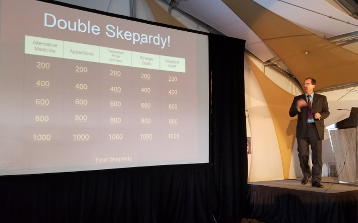 The conference ended with a fun game of Skepardy! – Jeopardy! for skeptics, presented by Bill Patterson. The questions were all about strange cults, conspiracy theorists, and paranormal celebrities.