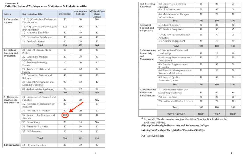 One of the most important criteria to get that grade is to publish a high number of research papers, as per the “distribution of weightages” list provided on the NAAC website. Item 3.4 “Research Publications and Awards” has a maximum score of 100, while other items only score 10-50 points. So it makes sense that the University put a lot of effort in publishing many research papers.
