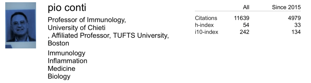 Conti is a professor at the University of Chieti, and although the university does mention him a couple of times in press releases, he does not appear to have a faculty page. He also claims to be an affiliated professor at Tufts University in Boston, although I could not verify this.