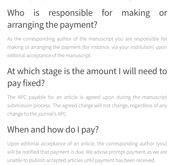 Unclear publication fees