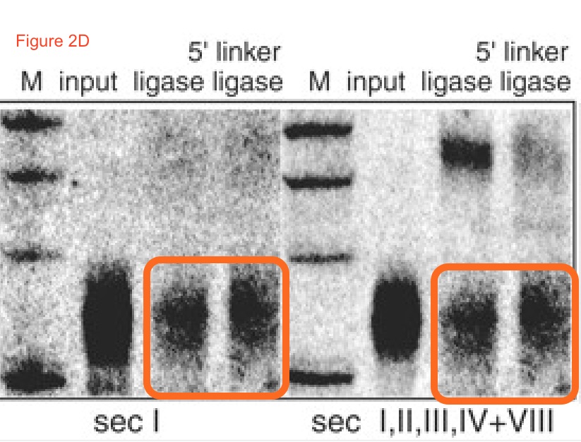 Figure 2D includes two panels that appear to contain the same RNA bands in the lower area of the photos, while the upper parts of the lanes are different. I have marked these duplications below with red boxes: