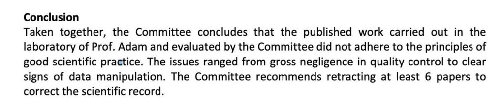 But the Czech/German committee that investigated the Vojtěch Adam et al. papers came to a surprisingly different conclusion. The committee found issues ranging from gross negligence to clear cases of data manipulation, and recommended the retraction of between six and nine papers.