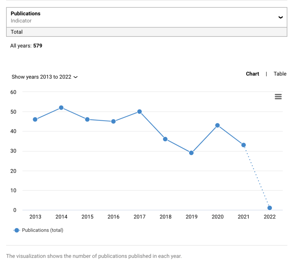Vojtěch Adam publications per year (source: Dimensions.ai)