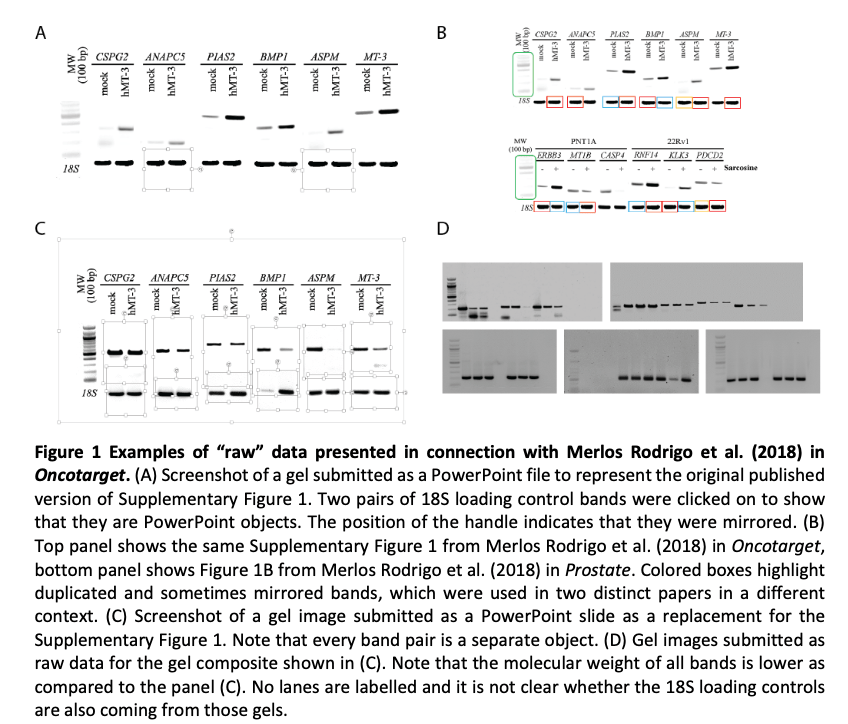 In October 2020, a PhD student brought to my attention a 2018 paper published by Dr. Adam in Oncotarget. It appeared to contain some duplications. I agreed, and posted the concerns on PubPeer, supplemented with an additional finding by Petr Svoboda via Twitter.
