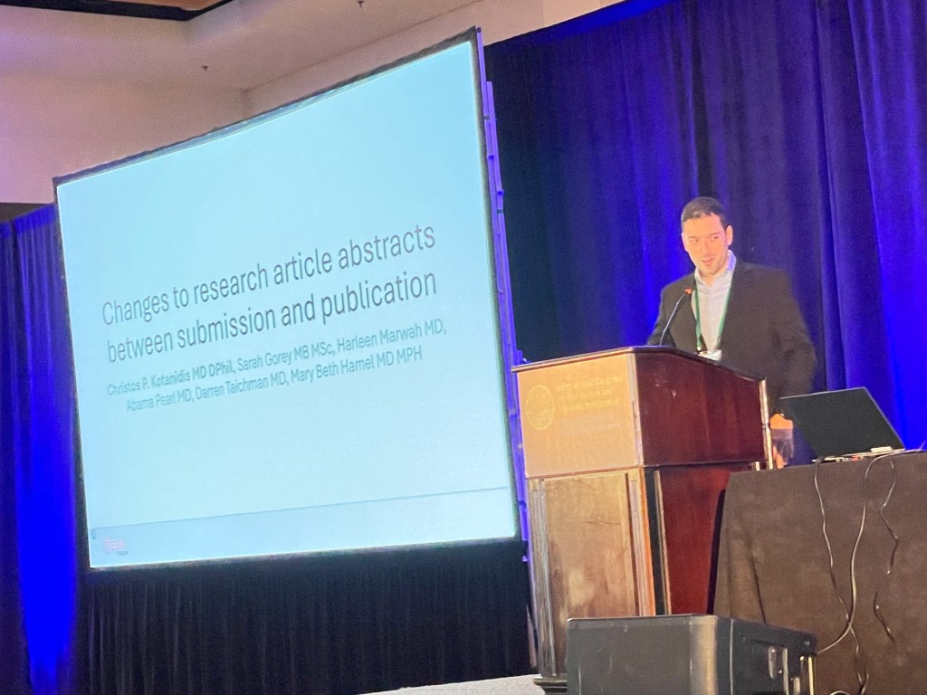 Back from lunch, we continue #PRC10 with ‘Editorial and Publishing Processes and Models‘, starting with a talk by Christos Kotanidis, with ‘Changes to Research Article Abstracts Between Submission and Publication‘ – CK: we looked at all original research articles submitted to @nejm.org in 2022.