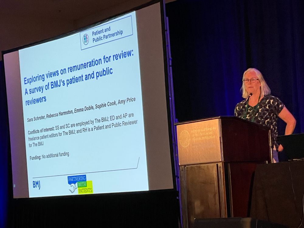 Next: ‘Exploring Views on Remuneration for Review: A Survey of BMJ’s Patient and Public Reviewers‘ with Sara Schroter@bmj.com: All our reviews are open and pubilshed – we integrate patients into all the work we do. Patients are asked to review as well – get same subscription rewards.