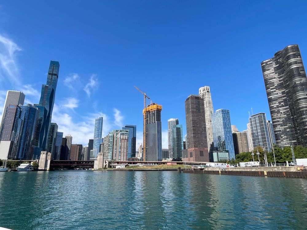 I skipped some of the morning talks to see this: Chicago as seen from the Chicago River, on a wonderful boat tour by the Chicago Architecture Center. Shout out to volunteer Bill, who did a great job making us look at all these tall buildings and their different styles, from a different perspective.