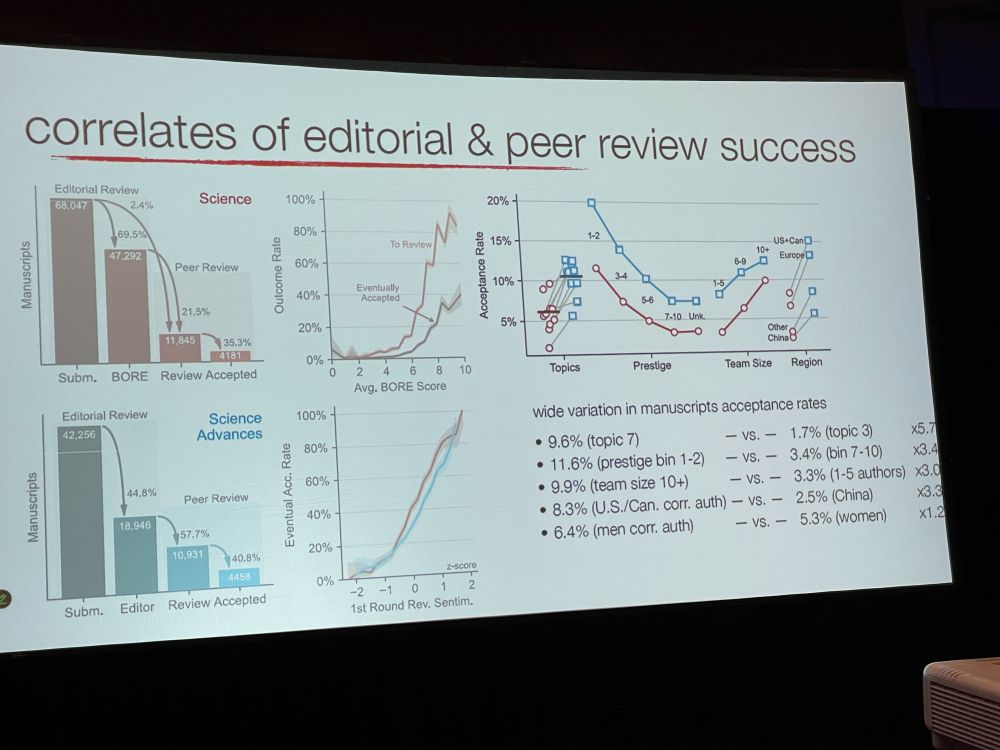 Next: Aaron Clauset with ‘Manuscript Characteristics Associated With Editorial Review and Peer Review Outcomes at Science and Science Advances‘ – Elite journals have profound influence in science discourse/careers – a lot of submissions get desk-rejected.